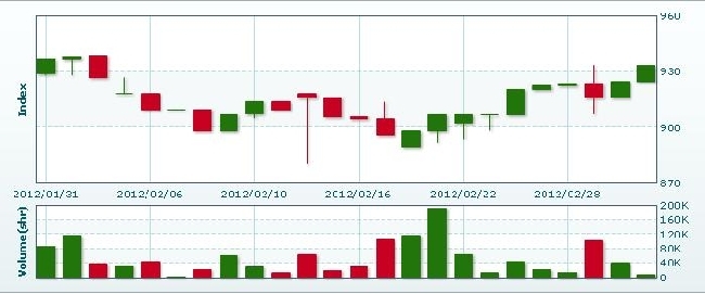 3月2日ラオス総合指数は8.8ポイント(0.95%)上昇し、933.43で取引を終えた。売買高は前日比83.6%減の6585株、売買代金は同80.8%減の4208万キープだった。