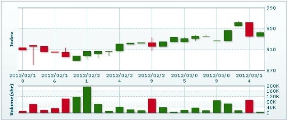 3月15日のラオス総合指数は6.59ポイント(0.7%)下落し、942.23で取引を終えた。売買高は前日比94.8%減の4947株、売買代金は前日比92.7%減の3187万5800キープだった。