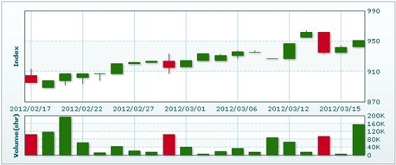 3月19日のラオス総合指数は2.66ポイント(0.28%)上昇し、953.69で取引を終えた。売買高は前日比75.6%減の3万7670株、売買代金は前日比67.8%減の2億3179万キープだった。