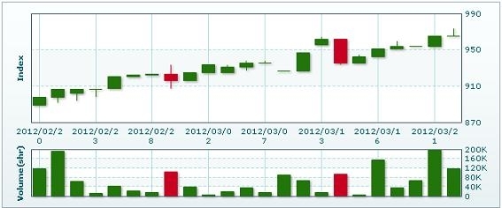 3月22日のラオス総合指数は前日比変わらずの964.84で取引を終えた。売買高は前日比40.5%減の11万7905株、売買代金は同40.0%減の5億6617万キープだった。