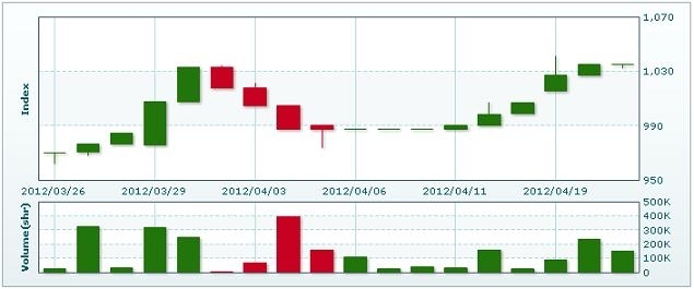 4月24日のラオス総合指数は16.96ポイント(1.64%)下落し、1017.92で取引を終えた。売買高は前日比0.1%減の15万4573株、売買代金は同10.1%増の8億7112万キープだった。