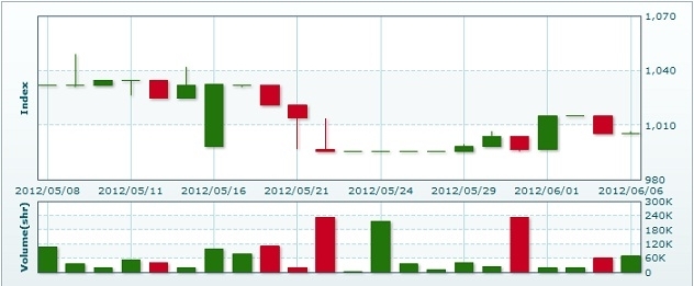 6月7日のラオス総合指数は8.48ポイント(0.84%)上昇し、1013.92で取引を終えた。売買高は前日比61.1%減の2万7000株、売買代金は同60.9%減の1億3737万キープだった。