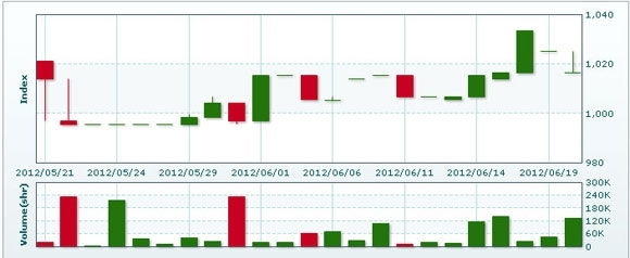 6月20日のラオス総合指数は8.48ポイント(0.83%)下落し、1016.59で取引を終えた。売買高は前日比2.97倍の13万4137株、売買代金は同2.74倍の6億6750万キープだった。