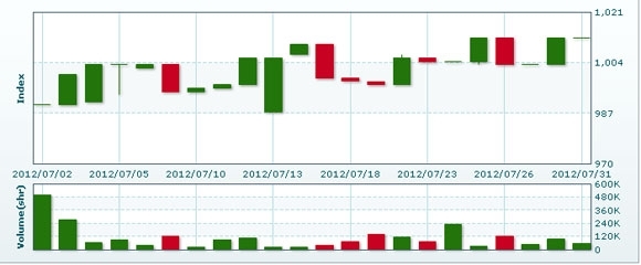 8月1日のラオス総合指数は前日比+13.24ポイント(1.31%)高の1025.56で取引を終えた。売買高は前日比約2.1倍の12万6371株、売買代金は同約2.7倍の7億6684万キープだった。