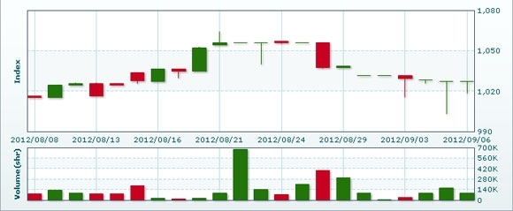 9月7日のラオス総合指数は前日比▲6.12ポイント(0.60%)安の1021.48で取引を終えた。売買高は前日比+22.5%増の11万0694株、売買代金は同+34.0%増の6億4237万キープだった。