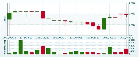 9月19日のラオス総合指数は前日比変わらずの1047.94で取引を終えた。売買高は前日比▲59.4%減の10万7398株、売買代金は同▲53.8の6億0125万キープだった。