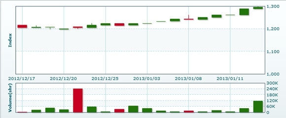 1月16日のラオス総合指数は前日比+19.33ポイント(1.49%)高の1315.46で取引を終えた。売買高は前日比▲71.7%減の3万2667株、売買代金は同▲68.1%減の2億3064万キープだった。