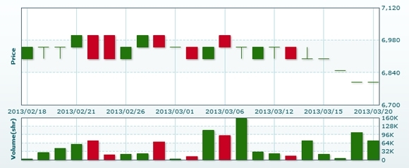 3月21日のラオス総合指数は前日比変わらずの1393.74で取引を終えた。売買高は前日比▲32.8%減の6万0695株、売買代金は同▲33.4%減の4億1555万キープだった。