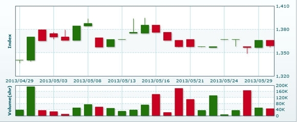 | 売買高 | 1663株 | ▲96.8%減 |