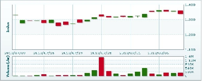 | ラオス総合指数 | 1338.91 | ▲18.3ポイント(1.35%)安 |