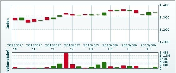 >> 8月14日のラオス総合指数 (2013/08/14)