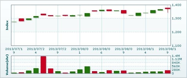 >> 8月20日のラオス総合指数 (2013/08/20)