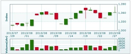 >> 8月28日のラオス総合指数 (2013/08/28)