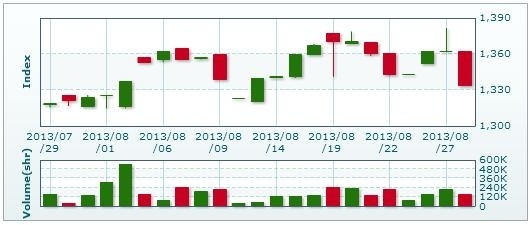 >> 8月28日のラオス総合指数 (2013/08/28)