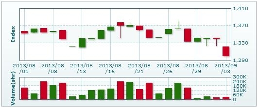 >> 9月3日のラオス総合指数 (2013/09/03)