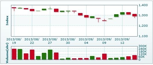 | ラオス総合指数 | 1293.12 | ▲17.28ポイント(1.32%)安 |