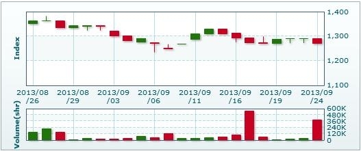 >> 9月24日のラオス総合指数 (2013/09/24)