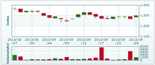 >> 9月25日のラオス総合指数 (2013/09/25)