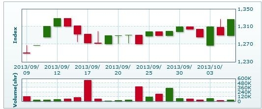 >> 10月9日のラオス総合指数 (2013/10/09)