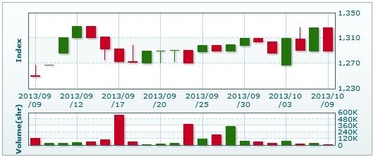 >> 10月10日のラオス総合指数 (2013/10/10)