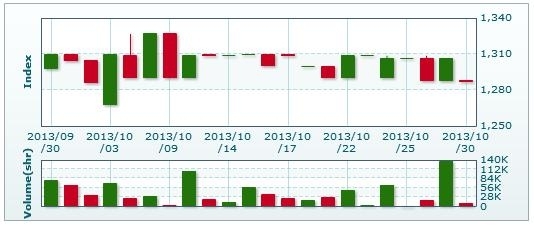 >> 10月30日のラオス総合指数 (2013/10/30)