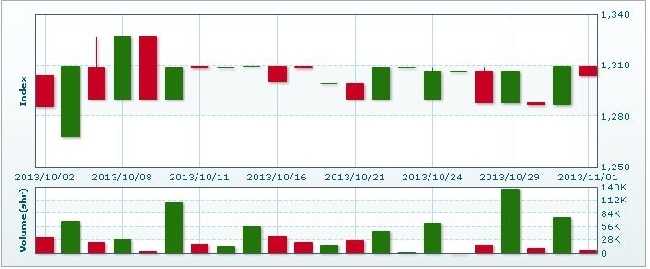 | ラオス総合指数 | 1304.29 | ▲5.09ポイント(0.39%)安 |