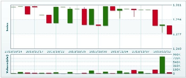 | ラオス総合指数 | 1276.83 | ▲11.19ポイント(0.87%)安 |