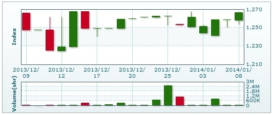 | ラオス総合指数 | 1266.25 | +7.59ポイント(0.60%)高 |