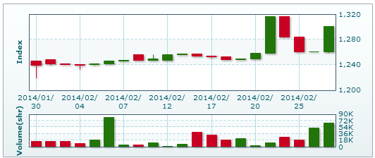 | ラオス総合指数 | 1301.07 | +40.64ポイント(3.22%)高 |