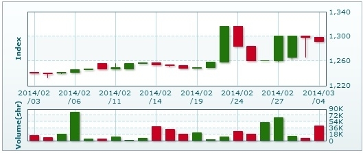 | ラオス総合指数 | 1291.93 | ▲6.79ポイント(0.52%)安 |