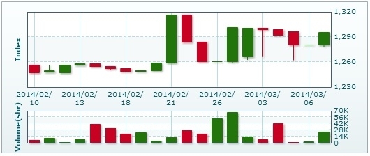 | ラオス総合指数 | 1295.25 | +14.91ポイント(1.16%)高 |