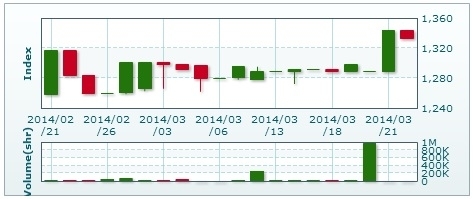 | 売買高 | 2014株 | ▲30.74%減 |
