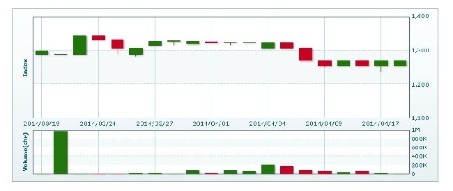 | 売買高 | 4000株 | ▲75.61%減 |