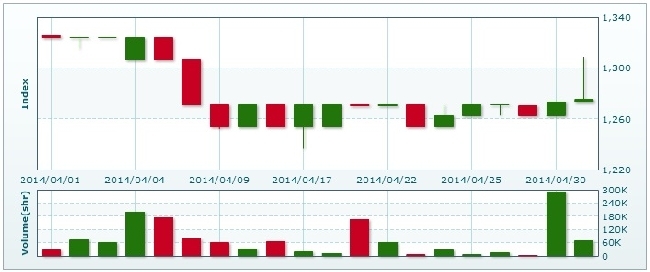 | 売買高 | 7万0833株 | ▲75.85%減 |