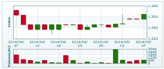 | ラオス総合指数 | 1309.19 | +17.41ボイント(1.35%)高 |