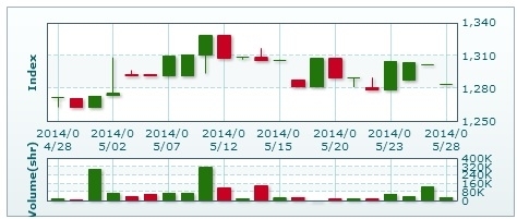 | ラオス総合指数 | 1284.12 | ▲17.41ポイント(1.34%)安 |