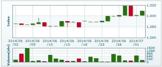 | ラオス総合指数 | 1309.27 | +7.74ポイント(0.59%)高 |