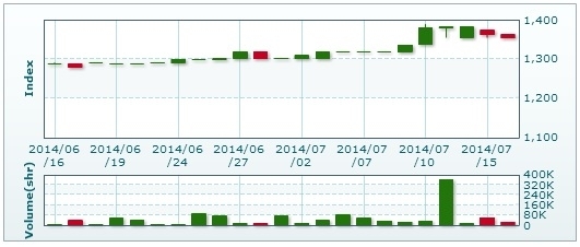 | ラオス総合指数 | 1353.77 | ▲8.70ポイント(0.64%)安 |