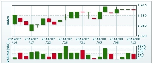 | 売買高 | 1万3702株 | ▲30.9%減 |