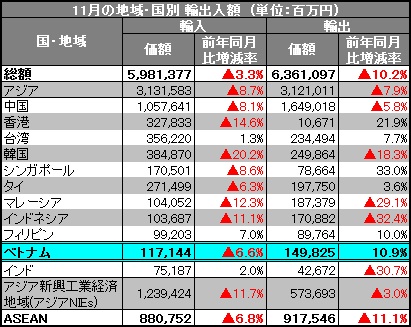 >> 10月の対日貿易収支、353.3億円の黒字(速報) (2015/11/19)