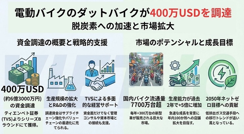 ダットバイクによると、今回調達した新たな資金は、生産規模の拡大、サプライチェーンの強化、流通システムのアップグレード、および研究開発(R&D)活動の強化に充てられる。