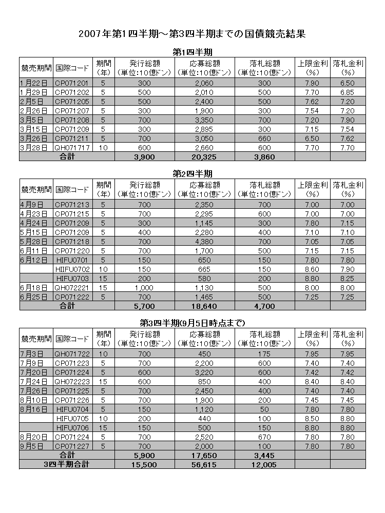 殆どの市場のメンバーは、最近国債競売の不調な結果は国債競売活動の問題点に起因していると思っている。これらの問題点は下記の通りである。