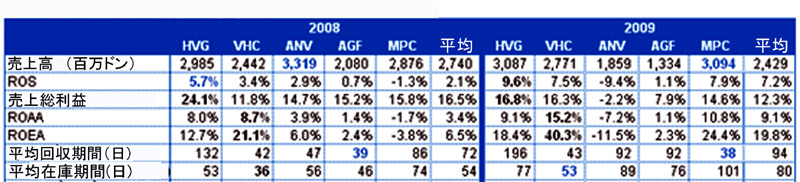 08年に金融投資引当金1680億ドン(約7億8500万円)を計上しなければならなかったため、税引後損益は417億ドン(約1億9500万円)の赤字となった。世界経済危機にも関わらず引当金計上の原因を除けば、営業利益が引き続き成長した点は注目に値する。