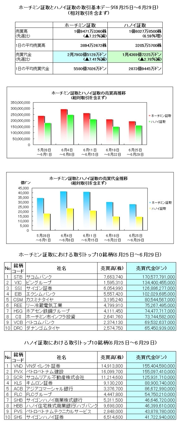 ベトナム株情報 > ベト株ニュース > 市場概況 > 市場全体の週間取引トップ10 (6月25日~6月29日)