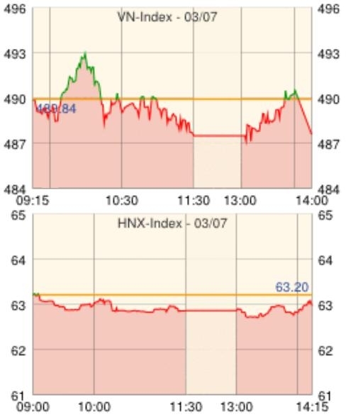 | VN指数 | 487.35 | -2.49 | -0.51 |