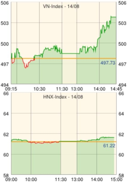 ホーチミン市証券取引所の14日の取引は、前日にアジア各国市場が上昇する中ベトナムだけが下落したのとは対照的に、中国株が4営業日ぶりに下落したにもかかわらず、VNインデックスは大きく反発した。僅かにプラスで寄り付いた後、朝方はプラス圏とマイナス圏を行き来する展開だったが、前場中盤からはプラス圏へ移行。後場中盤よりペトロベトナムガス[GAS]が大きく買われて上場以来の高値を記録しインデックスを牽引、ビナミルク[VNM]、ペトロベトナム・ドリリング[PVD]、ペトロベトナム総合サービス株式公社[PET]などの主力株が買われてインデックスは大きく上昇し、前日終値を+5.84上回る503.57ポイントで取引を終えた。