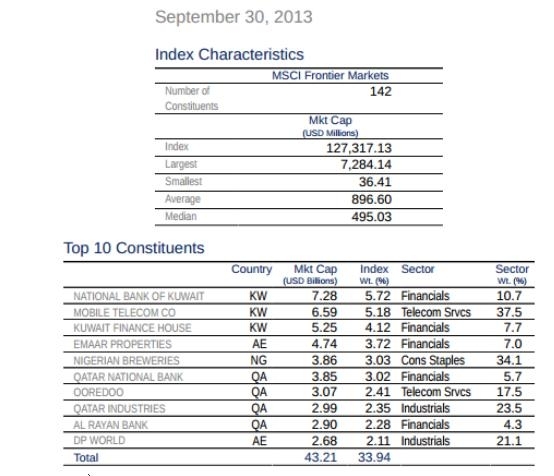 <MSCIフロンティア・マーケット・インデックスの時価総額及びトップ10>(9月30日時点)
