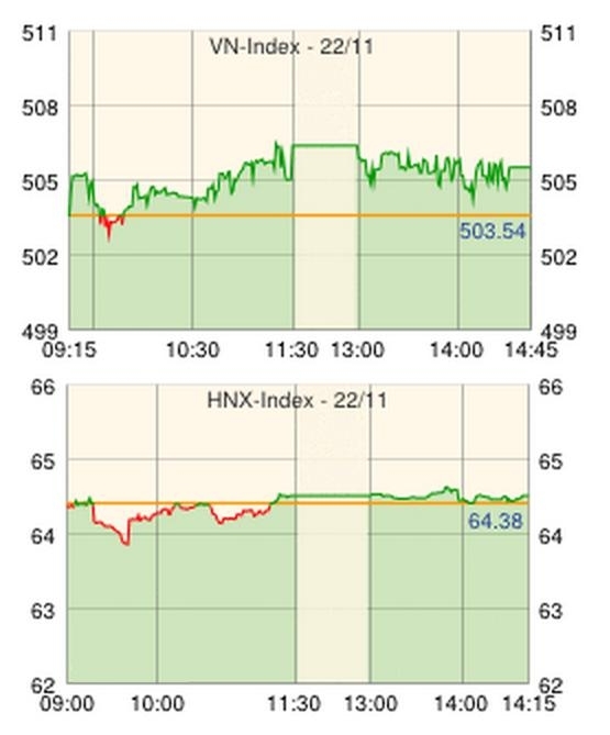 ホーチミン証券取引所の22日の取引は、良好な雇用指標を受け米国市場が上昇したことが好感されプラスで寄り付いたものの、取引は軟調で間もなくマイナス圏に転落。だが、ファーライ火力発電[PPC]が値を上げてインデックスを牽引し、プラスに回復した。前日の国会でズン首相が11月の企業設立数が増加し、事業停止企業が営業を再開していることや、今年通年のCPI上昇率が直近10年で最低水準に抑えられる見通しについて発表していたことが材料となり、買いが先行してインデックスはプラスで推移。前日終値を+2.1ポイント上回る505.64で取引を終えた。