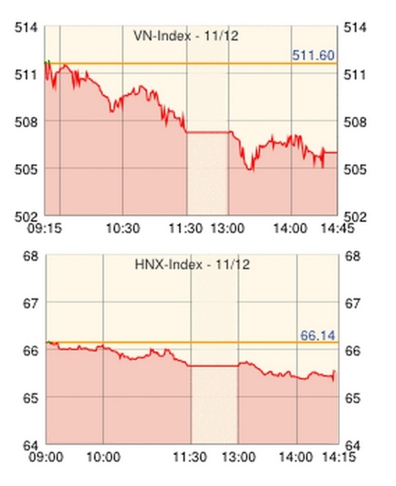 | VN指数 | 505.31 | -6.29 | -1.23 |