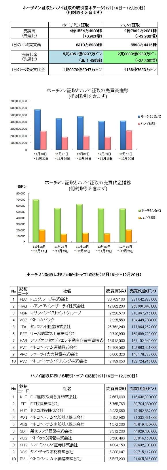 ベトナム株情報 > ベト株ニュース > 市場概況 > 市場全体の週間取引トップ10 (12月16日~12月20日)